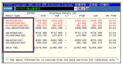 此外,新增的貴金屬報價專頁 (837607) ,提供黃金、白銀等主要貴金屬的美元、港元及人民幣報價,另提供金條參考價格,種類更勝從前,客戶定能掌握更全面的貴金屬報價資訊。