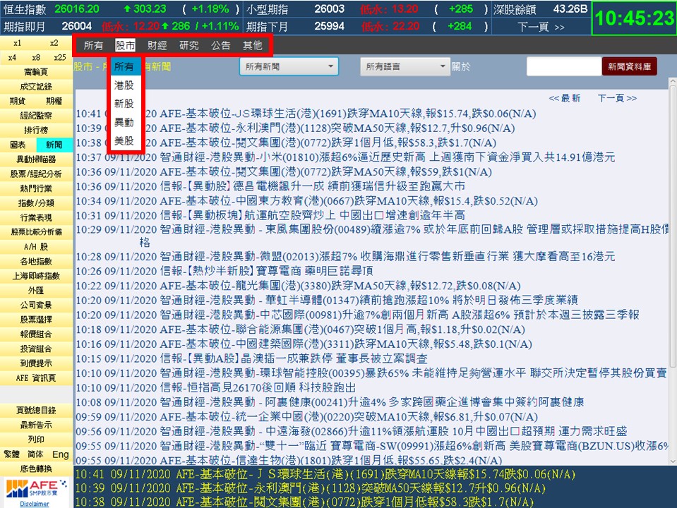 重點推介 為配合香港交易所最新推出的優化開市前時段,新版本的個別股票報價頁面會於開市前時段顯示該股的時段參考價、上限價及下限價,開市前時段價格走勢盡收眼底。 SMP現已全面更新新聞介面,即市新聞改以類別分類,進一步優化用戶介面,助用戶更便捷篩選新聞。